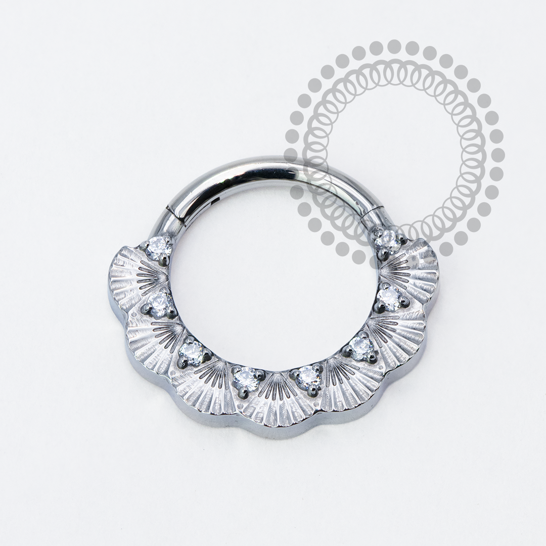Descrição: Ideal para cartilagem, lóbulo, helix, septo, daith, entre outros piercings, oferecendo um ajuste confortável e seguro. É uma joia cheia de estilo.