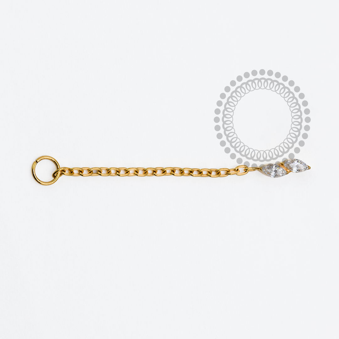 TN1956 Topo 2 Navetes CZ Corrente Titânio PVD Gold