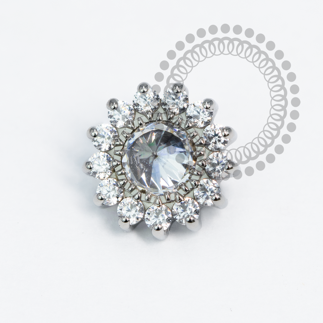 Zircônias Cúbicas: São pedras sintéticas que imitam o brilho dos diamantes, oferecendo uma alternativa brilhante e acessível para adornar peças de joalheria.