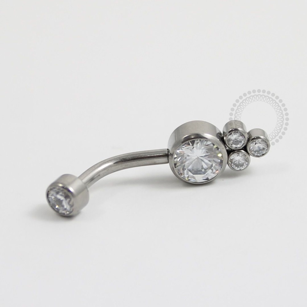 Descrição: Ideal para perfuração de umbigo, oferecendo um ajuste confortável e seguro. É uma joia cheia de estilo. O design curvado da haste permite um melhor encaixe na anatomia do corpo, minimizando o risco de irritação. Além disso, é fácil de limpar e manter, o que é essencial para garantir a saúde da perfuração.