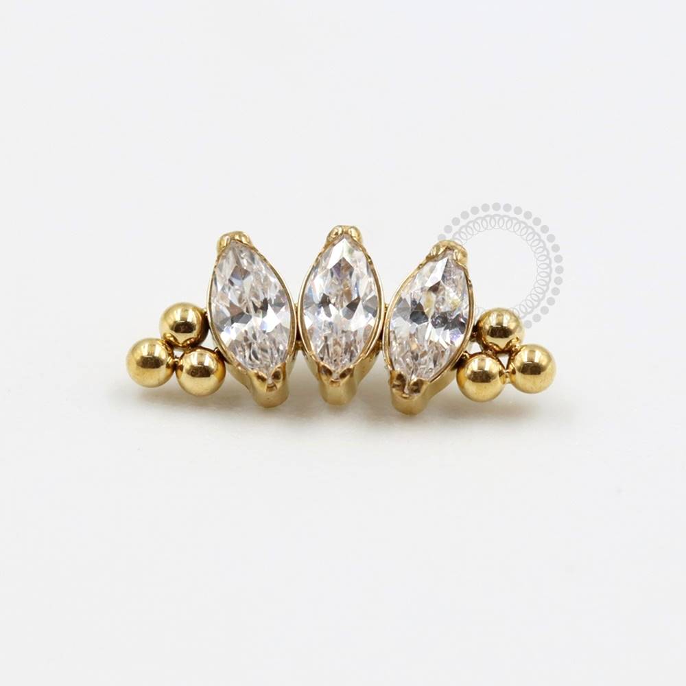 TN319 Topo Cluster 3 Navetes Esferas Titânio PVD Gold