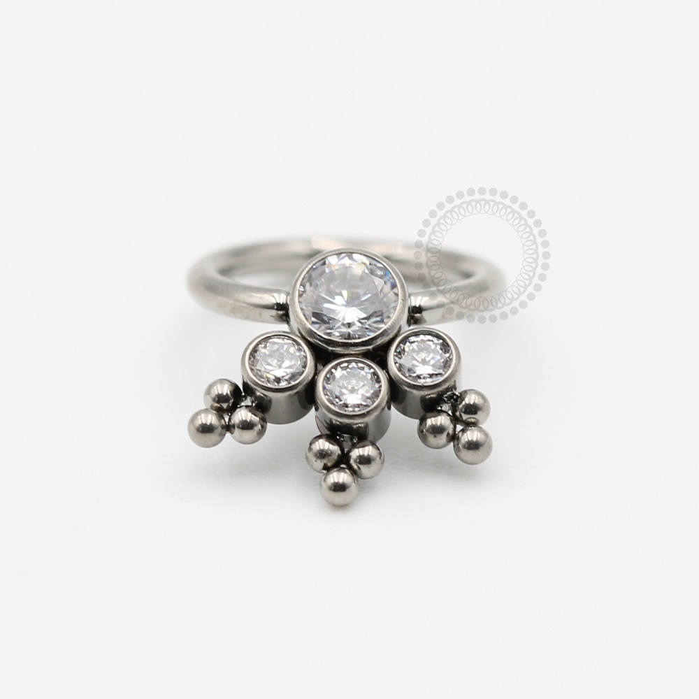 Descrição: Ideal para septo,daith, cartilagem,helix, e outros piercings, oferecendo um ajuste confortável e seguro. É uma joia cheia de estilo