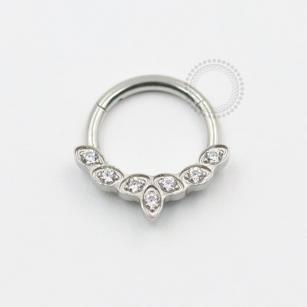 Descrição: Ideal para septo,daith,helix,cartilagem, entre outros, oferecendo um ajuste confortável e seguro. É uma joia cheia de estilo