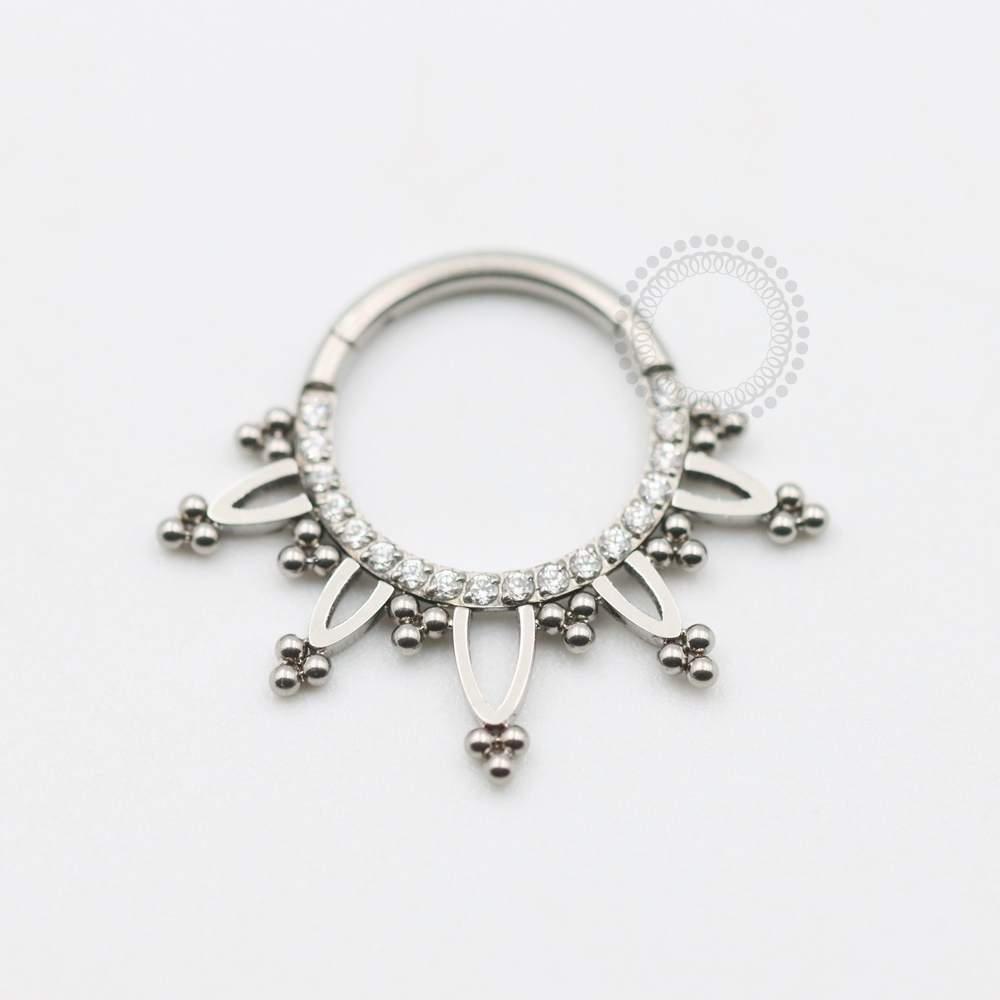 Descrição: Ideal para septo, daith, helix, cartilagem, entre outros, oferecendo um ajuste confortável e seguro. É uma joia cheia de estilo