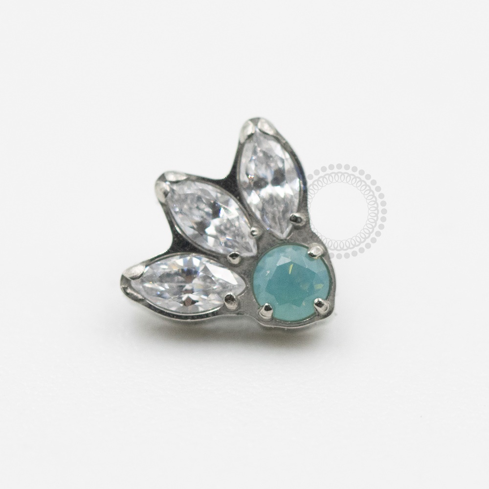 TN625 Topo 3 Pétalas CZ e Opalitte Green Titânio ASTM F136