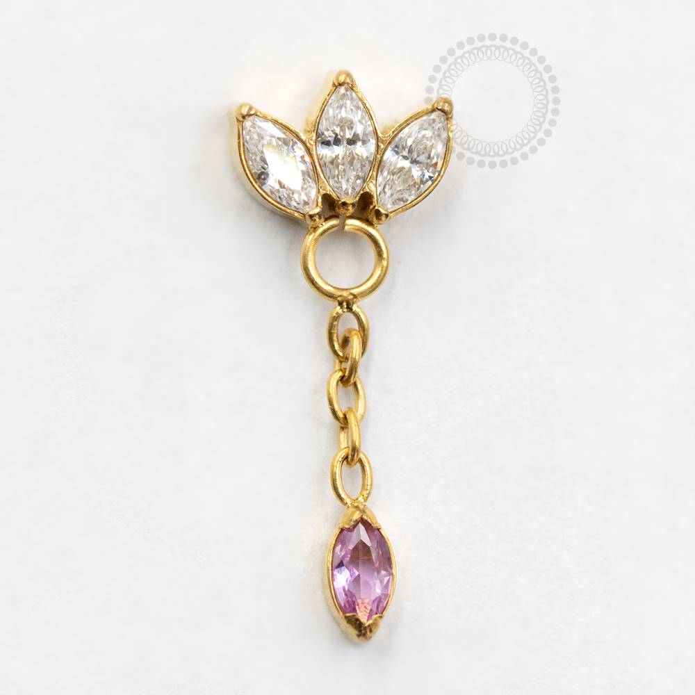 TN733 Topo 3 Navetes Pingente CZ Titânio PVD Gold