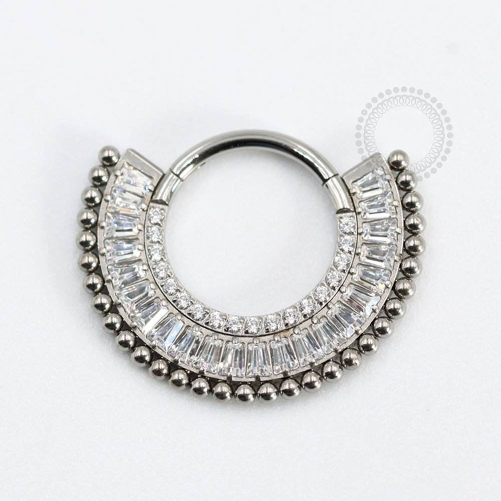 Descrição: Ideal para septo, daith, cartilagem, helix, entre outros, oferecendo um ajuste confortável e seguro. É uma joia cheia de estilo