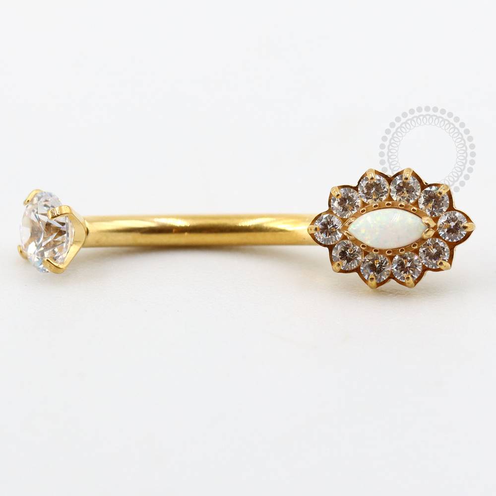 Descrição: Ideal para perfuração de umbigo, oferecendo um ajuste confortável e seguro. É uma joia cheia de estilo. O design curvado da haste permite um melhor encaixe na anatomia do corpo, minimizando o risco de irritação. Além disso, é fácil de limpar e manter, o que é essencial para garantir a saúde da perfuração.