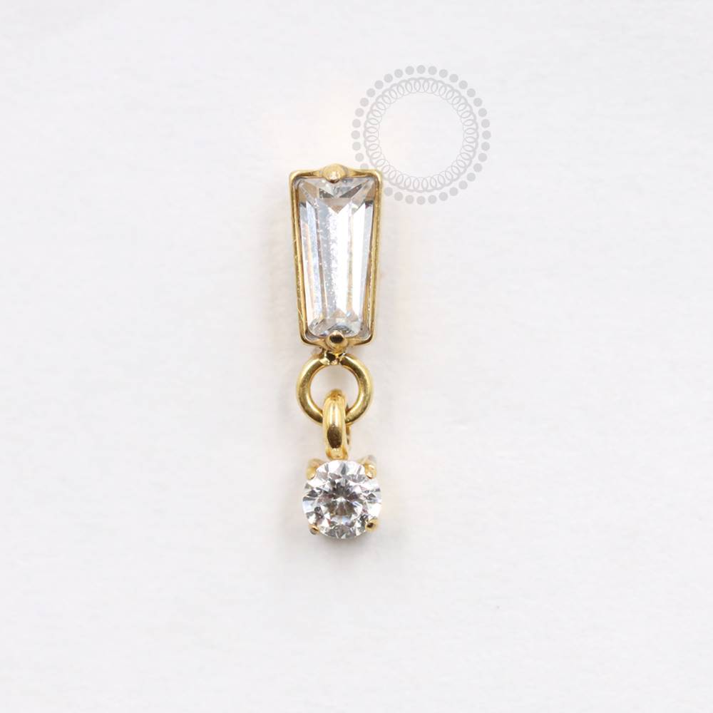TN754 Topo Baguete e Pingente CZ Titânio PVD Gold