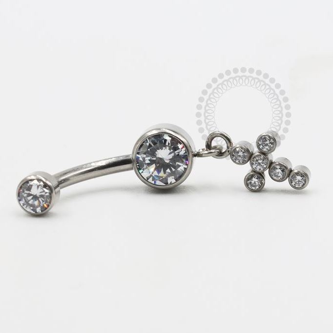 Descrição: Ideal para perfuração de umbigo, oferecendo um ajuste confortável e seguro. É uma joia cheia de estilo. O design curvado da haste permite um melhor encaixe na anatomia do corpo, minimizando o risco de irritação. Além disso, é fácil de limpar e manter, o que é essencial para garantir a saúde da perfuração.