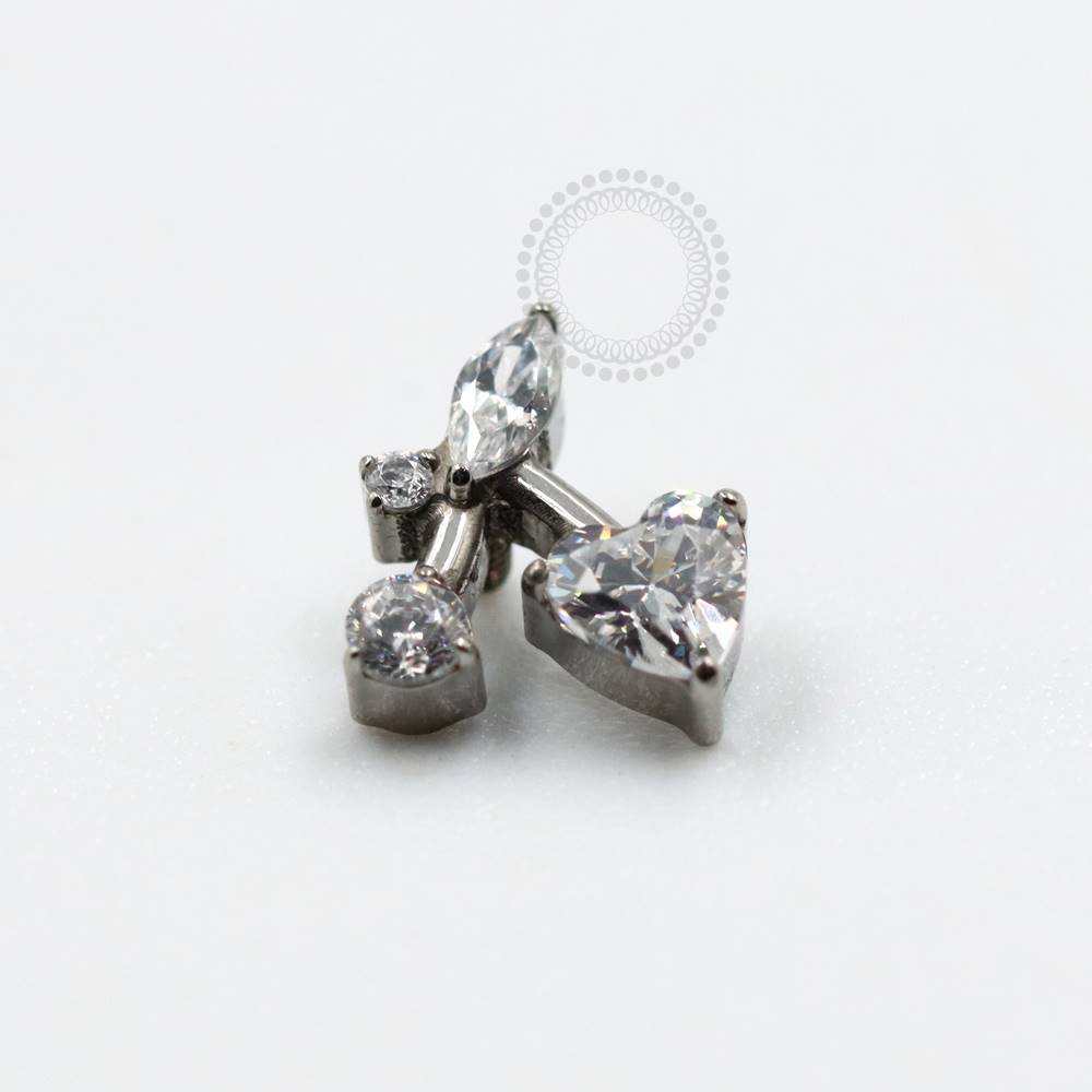 TN814 Topo Cerejas Coração CZ Titânio ASTM F136