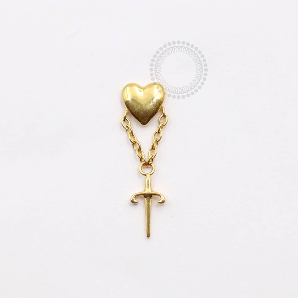 TN931 Topo Coração Pingente Espada Titânio PVD Gold