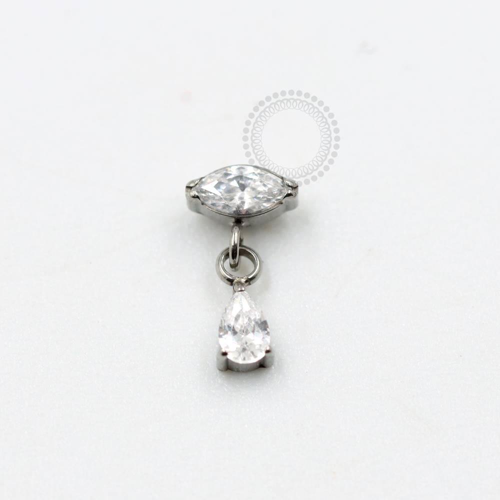 TN967 Topo Navete CZ Pingente Gota Titânio ASTM F136