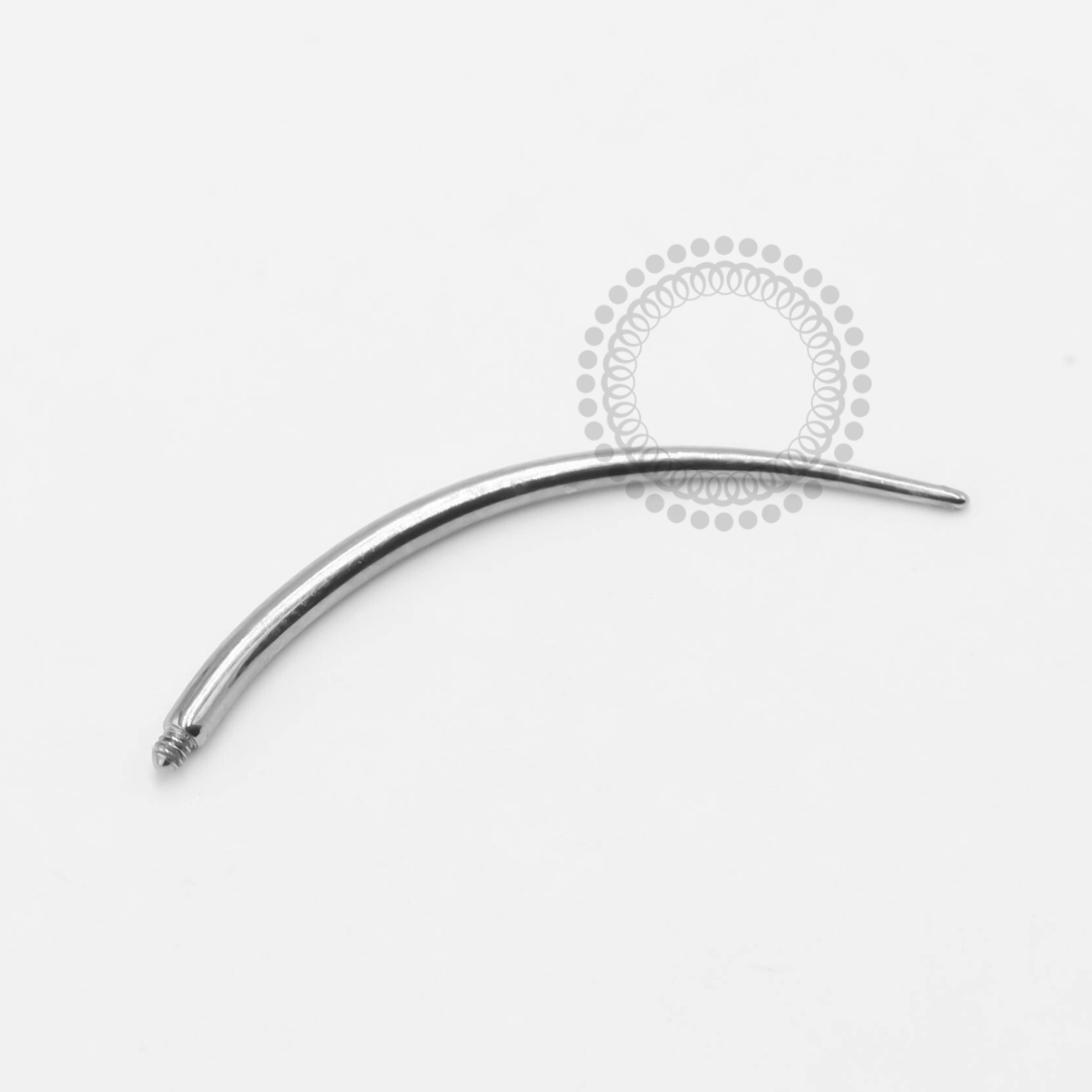 Descrição do Produto: O taper curvo de titânio ASTM F-136 é utilizado para auxiliar o profissional na hora de passar a joia. Ele serve para fixar a haste da joia, minimizando o risco de perder a perfuração e evitando desconforto e dor durante o procedimento. Com sua medida de 30 mm, este taper oferece precisão e segurança, sendo uma ferramenta indispensável para piercers.